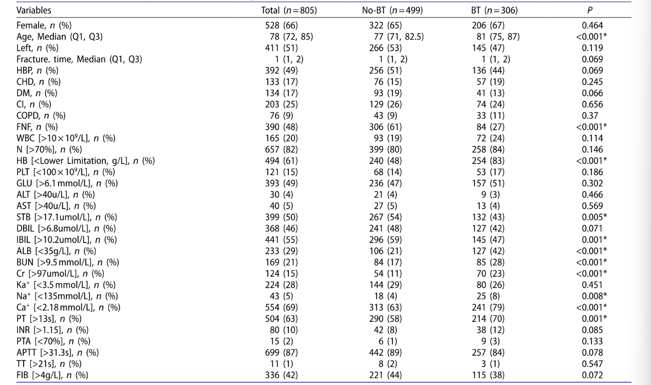 Guo J, He Q, Li Y. Development and validation of machine learning models to predict perioperative transfusion risk for hip fractures in the elderly. Ann Med. 2024 Dec;56(1):2357225. doi: 10.1080/07853890.2024.2357225. Epub 2024 Jun 20. PMID: 38902847; PMCID: PMC11191839.