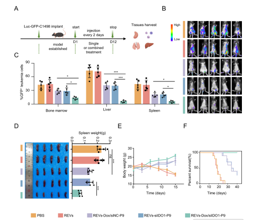 图 3|REVs-Dox/siIDO1-P9 在体内可被有效递送至白血病细胞